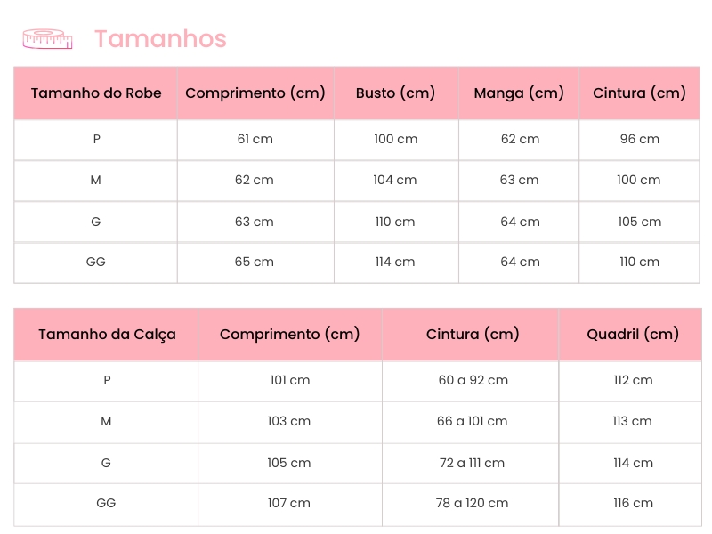 e gola redonda, a calça tem modelagem reta e elástico no cós para mais conforto, sem precisar de botões, cordas ou zíperes.