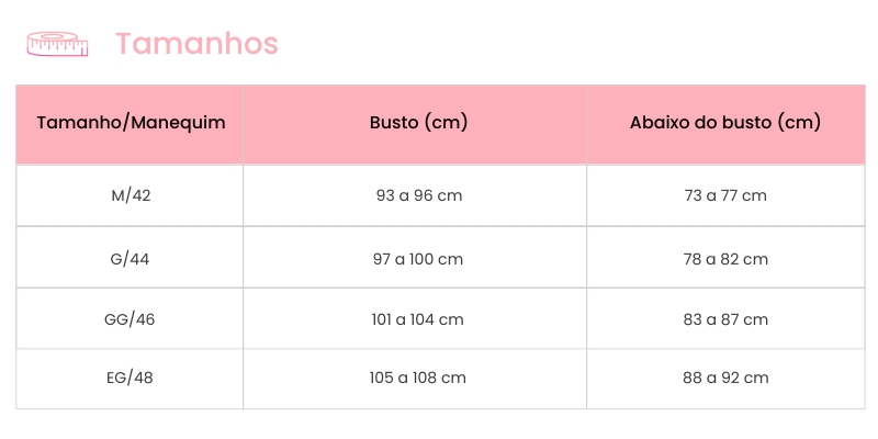 A lateral larga oferece maior conforto e apoio, ajudando a modelar o corpo com suavidade e garantindo um ajuste perfeito ao busto.