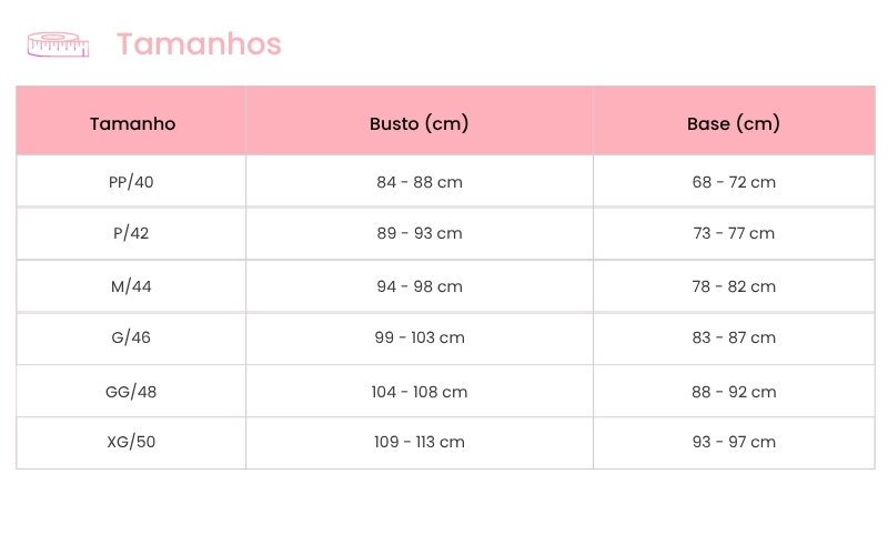 Com alças e laterais largas, o modelo garante sustentação e firmeza. O bojo removível oferece versatilidade, podendo ser usado para realçar o busto ou retirado para um caimento natural. O acabamento a laser torna a peça invisível sob a roupa, e o fecho com quatro regulagens permite ajuste perfeito.